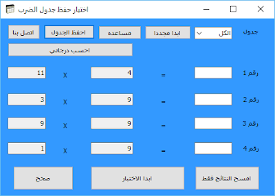 اختبار جدول الضرب 2