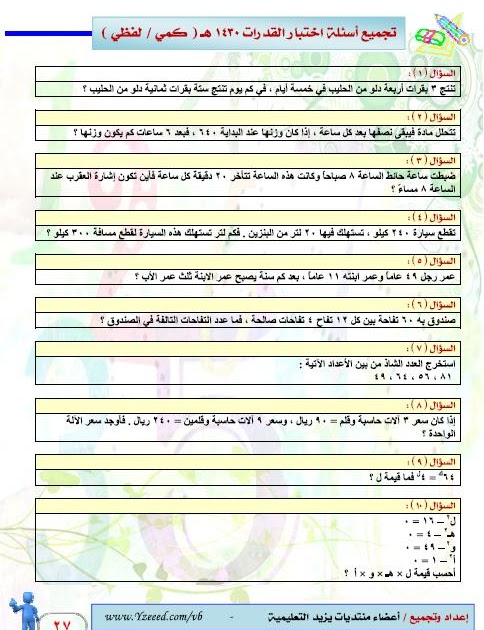 ملف تجميع أسئلة وحلول أ فهد البابطين لاختبار القدرات 1432 الفترة الاولى بنين منتديات يزيد التعليمية