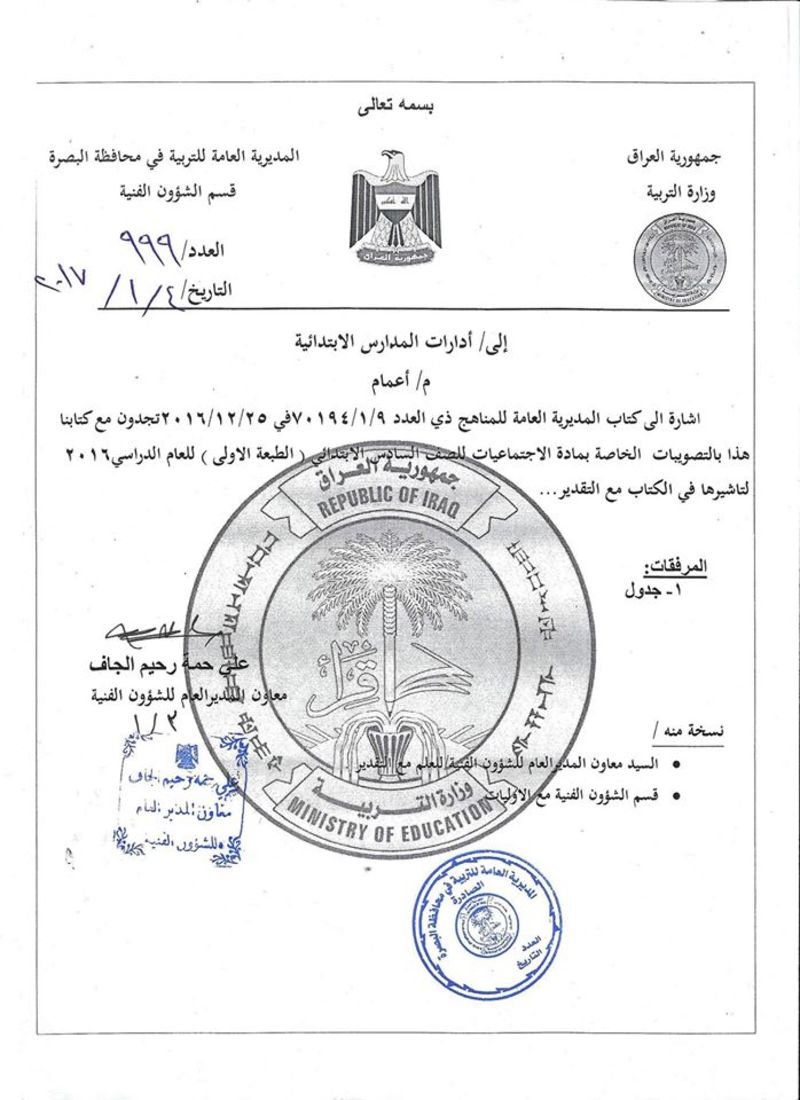 بالوثائق وزير التربية يوافق على مقترحات المديرية العامة للمناهج الدراسية بحذف الصلاة على ال البيت