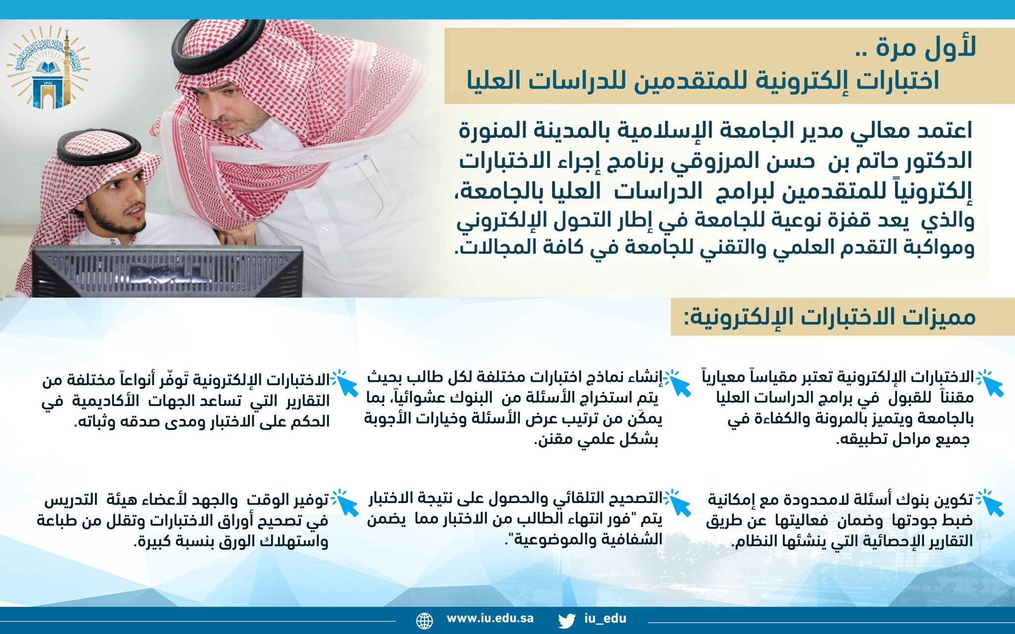 سمو نائب أمير منطقة المدينة المنورة الأمير سعود بن خالد الفيصل يستقبل سمو رئيس الجامعة الإسلامية منذ شهر. القبول في المعهد المتوسط. أعلنت عمادة الدراسات العليا بالجامعة الإسلامية بالمدينة المنورة عن فتح باب القبول في برامج الدراسات العليا للعام الجامعي 1439 1440هـ. حقوق الطبع عمادة الدراسات العليا الجامعة الإسلامية بالمدينة المنورة 2020 تقديم الدراسات العليا رئيسية.
