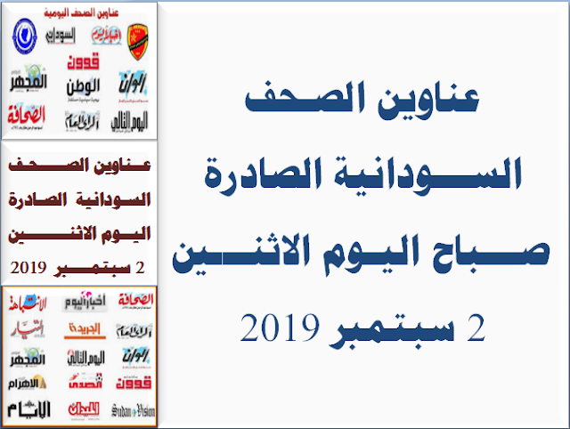 أبرز عناوين الصحف السودانية الصادرة صباح اليوم الإثنين الموافق ١٦ سبتمبر ٢٠١٩م سوداني نت