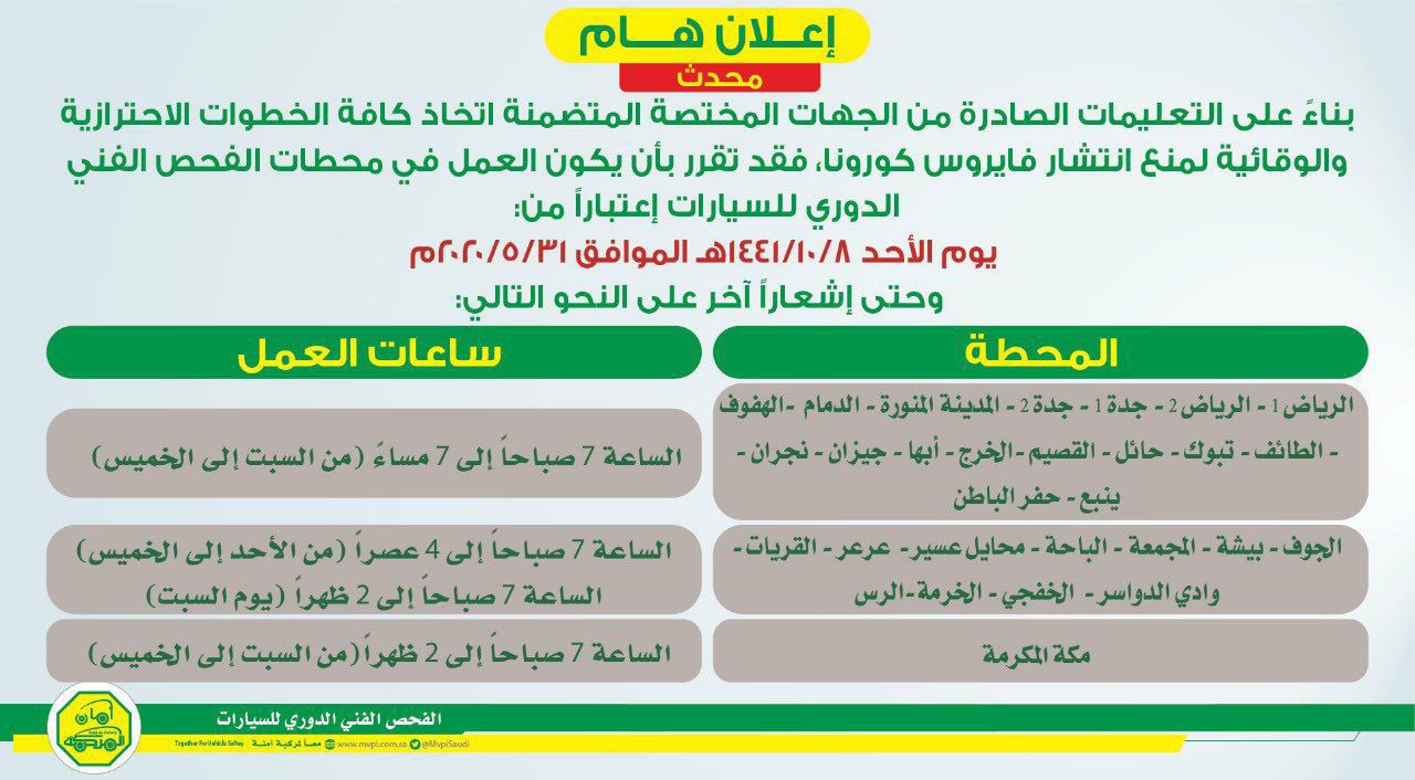 دليل الأحساء Pa Twitter الفحص الفني الدوري للسيارات يعلن أوقات العمل في محطاته