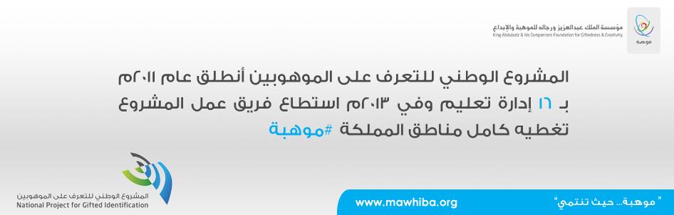 المشروع الوطني للتعرف على الموهوبين. 1 برنامج رعاية الموهوبين بمدارس التعليم العام. طريقة التسجيل في البرنامج الوطني للكشف عن الموهوبين. أهداف المشروع الوطني للتعرف على الموهوبين بالمملكة العربية السعودية. التعرف على الطلبة الموهوبين والموهوبات في المملكة العربية السعودية في كافة المجالات العلمية.