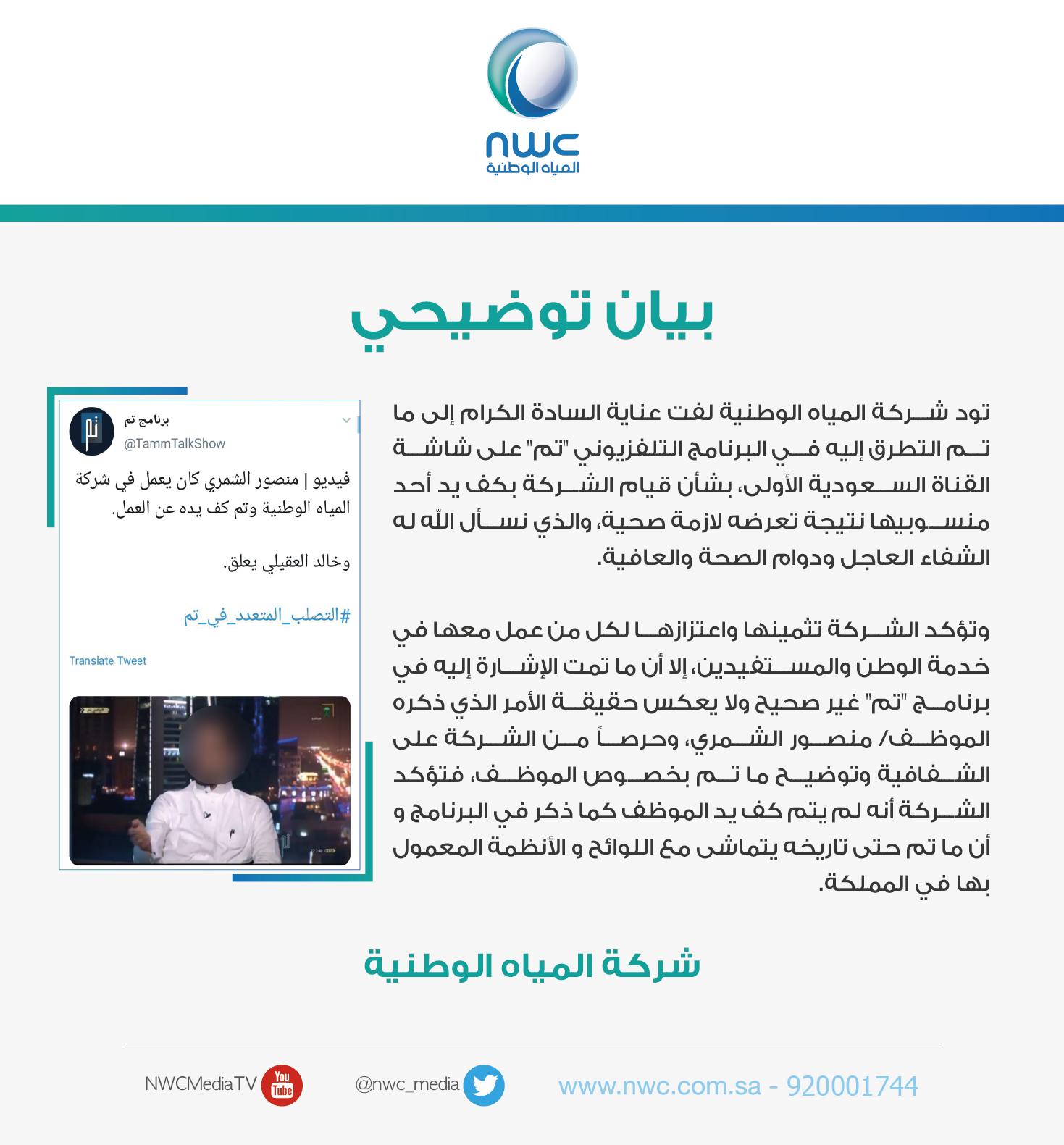شركة المياه الوطنية On Twitter بيان توضيحي من المياه الوطنية Tammtalkshow
