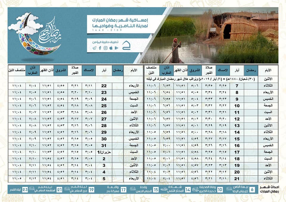 إمساكية شهر رمضان 2019 م 1440 هـ لمدينة الناصرية وضواحيها منتديات درر العراق