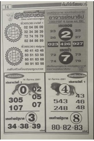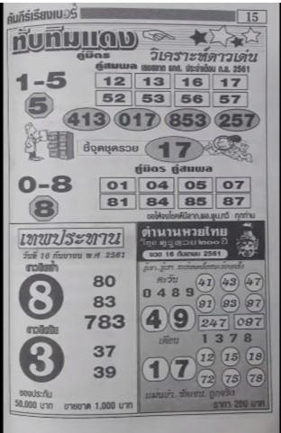 Thai Lottery Vip Tips Thai Lottery 2nd Paper For 16 September 2018